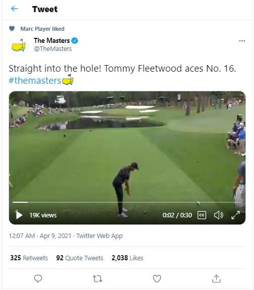 This had to belong to Fleetwood with a delicious ACE on the 16th - late in the day. He took dead aim, while others had tried to use the slope.