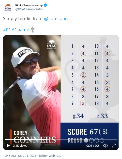 The afternoon could have gotten messy - but the greens stayed true and the ball striking machine as discussed in the build up delivered! Corey Conners proceeded to stripe it all day - even down the notorious stretch of 14 to 18, which he played in 2 under. A 6-birdie 67 was due reward for his efforts. He showed glimpses of this ability at Augusta and his big win is coming.