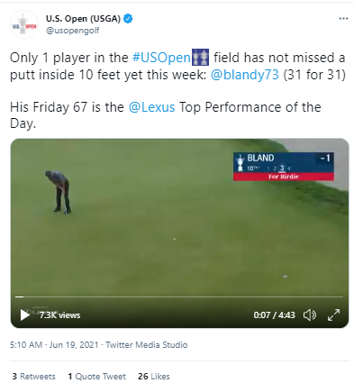 Hughes made 3 birdies on holes 10 to 12 to start his round - easily the toughest stretch at Torrey Pines, but then went quiet on the front 9 later in the day. All of his birdies were from long range - his shortest being 20 ft, other ones were measured in yards!