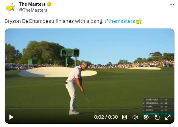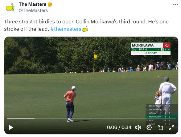 Further down the leaderboard, a low number got you charging up a packed leaderboard. X had a bogey free 70 that leaves him 5 back. He will need that hot start tomorrow to get into the Green Jacket, but based on history the challenge will be great.