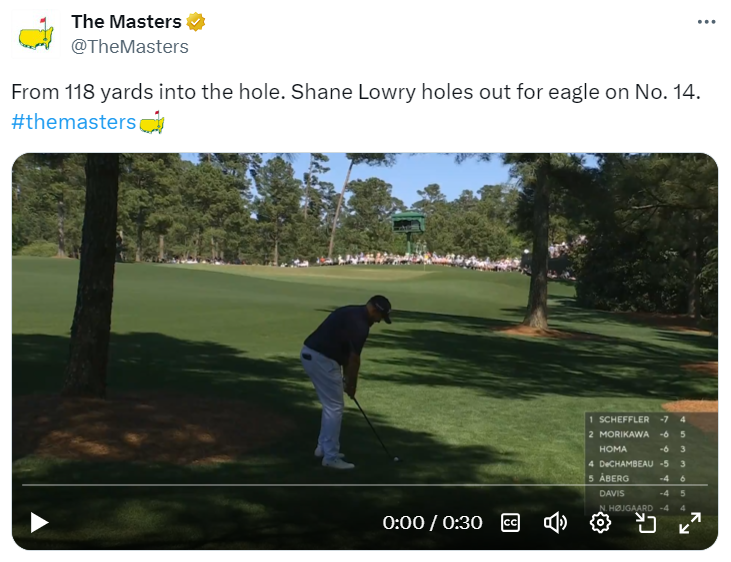 We have not seen many hole-outs this week or at least none from decent distance, so Lowry knocking one in on 14 for eagle was a shock and a cracker. Its the first eagle on 14 since 2016.